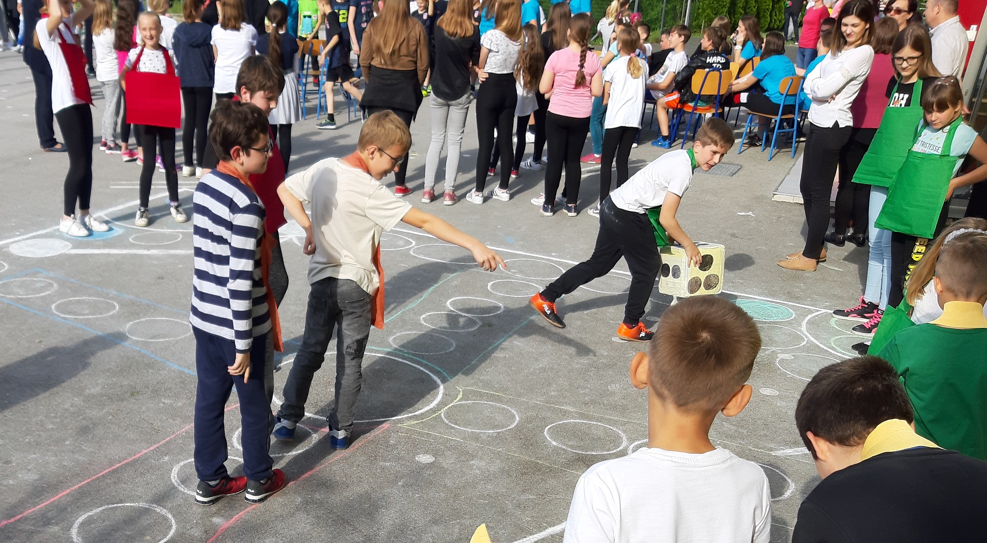 Druženje je nastavljeno na školskom igralištu. Tako su mame s učenicima igrale graničar. Neki su igrali Čovječe ne ljuti se, ali svojim tijelima.