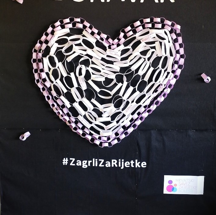 Učenici produženog boravka uključili su se u kampanju #ZagrliZaRijetke. Pogledali su edukativne filmove o rijetkim bolestima te razgovarali o važnosti prihvaćanja, razumijevanja i podrške. Svoju su poruku solidarnosti izrazili zajedničkom fotografijom zagrljaja, a potom su izradili pano na kojem su oblikovali lanac dobrote u obliku srca. Na karikama su ispisane riječi ohrabrenja i vrijednosti koje žele njegovati – prijateljstvo, podrška, hrabrost i zajedništvo.