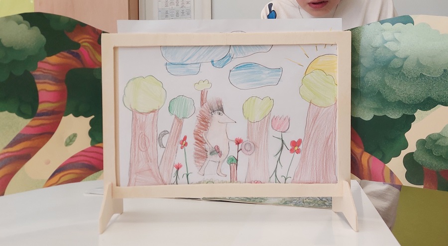 Učenici su kroz vlastite crteže i maštovito pripovijedanje oživjeli poznatu priču Ježeva kućica Branka Ćopića, koju su pripremali zajedno sa svojom učiteljicom Metkom Adelom Metlikovec i knjižničarkom Valentinom Putar . Na taj su način pokazali koliko je pripovijedanje moćan alat za izražavanje, ali i koliko knjige mogu biti inspiracija za stvaranje. Kamišibaj kutiju, u kojoj su učenici izvodili priču, izradio je učitelj tehničke kulture Zlatko Rusan.