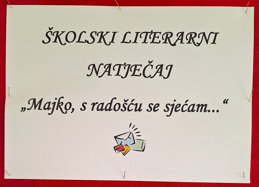 Svake godine 11. svibnja obilježava se Svjetski dan pisanja pisama. U tjednu uoči Svjetskog dana pisanja pisama učenici naše škole mogli su se uključiti u školski literarni natječaj za najljepše pismo napisano majci. Naziv ovogodišnjeg natječaja bio je „Majko, s radošću se sjećam...”