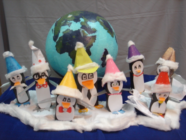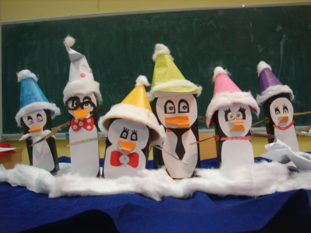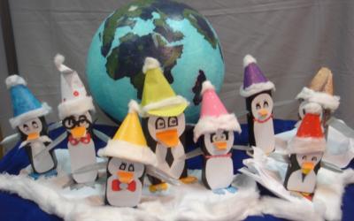 Polaznici Projektne grupe su učenici od 5. do 8. razreda. Kroz program Projektne grupe provodimo razne aktivnosti i projekte. Kad sam učenicima predstavila Eko paket projekt odmah su krenuli sa idejama. Na početku projekta razgovarali smo o važnosti odvojenog zbrinjavanja upotrijebljene tetra pak ambalaže i odgovornog ponašanja prema prirodi. Polaznici Projektne grupe marljivo su skupljali ambalažu i na pravilan način je zbrinuli. Jedan dio smo odvojili kako bi napravili nešto novo, lijepo i korisno. S obzirom da su tema projekta klimatske promjene, učenici su odmah krenuli s idejom o izradi pingvina od tetra pak ambalaže. Učenici su malo istraživali o toj tematici i otkrili kako zbog globalnog zatopljenja nestaje dragocjeno kopno na kojem neke vrste pingvina podižu svoje mladunce, dok su druge ostale bez izvora hrane zbog pretjeranog izlova povezanog s pomicanjem ledene površine. Najnovije istraživanje je pokazalo kako svakih 0,26 dodatnih stupnjeva Celzijevih uzrokuje pad pingvinske populacije za 9 posto. To znači da će se pingvini suočiti s opasnim smanjenjem broja populacije. Upravo zbog tih podataka mi smo odlučili izraditi Tetra Pak pingvine i barem na taj način povećati njihov broj. Predstavljamo vam obitelj gospodina Pingvinića.