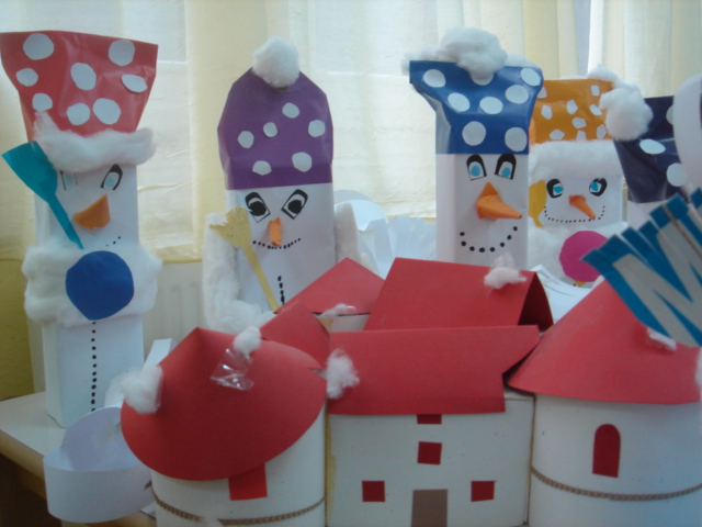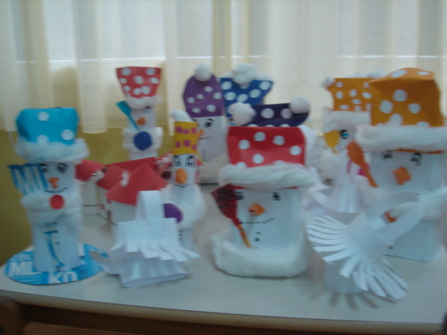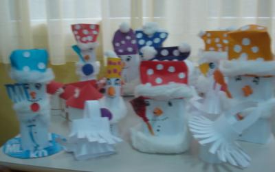 Nakon što smo učenike kroz razgovor upoznali sa izgledom tetra pak ambalaže, skrenuli smo im pri tom pažnju i na važnost odvojenog zbrinjavanja upotrijebljene tetra pak ambalaže i odgovornog ponašanja prema prirodi. Učenici su marljivo skupljali ambalažu i odlučili joj dati priliku da ne bude samo otpad već nešto lijepo i korisno. Dugo smo razmišljali kako povezati klimatske promjene i tetra pak ambalažu… Ovih dana naslušali smo se na vremenskim prognozama kako bi mogao pasti snijeg…I čekamo i čekamo , a od snijega ništa. Štoviše, procvjetale visibabe. A što je zima bez snijega… I tada nam je sinula ideja kako bismo mogli izraditi snjegoviće od tetra pak ambalaže i barem na taj način približiti osjećaj zimskih radosti. Naime, zbog klimatskih promjena vremenski uvjeti ne odgovaraju baš pojedinom godišnjem dobu. Svi se pitamo gdje su ta vremena kada bi zimi danima padao snijeg, a djeca bi po čitave dane uživala na svježem zraku i pravila velike snjegoviće. Učenicima se ideja o izradi snjegovića odmah svidjela i bacili smo se na posao. Evo i nekoliko fotografija…