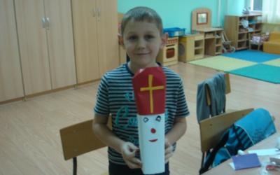 Osim navedenih predmeta od tetra pak ambalaže, učenici 2. razreda izradili su i Sv. Nikolu, zapravo mnogo njih, koji su krasili predvorje naše škole povodom priredbe uoči dolaska Sv. Nikole.