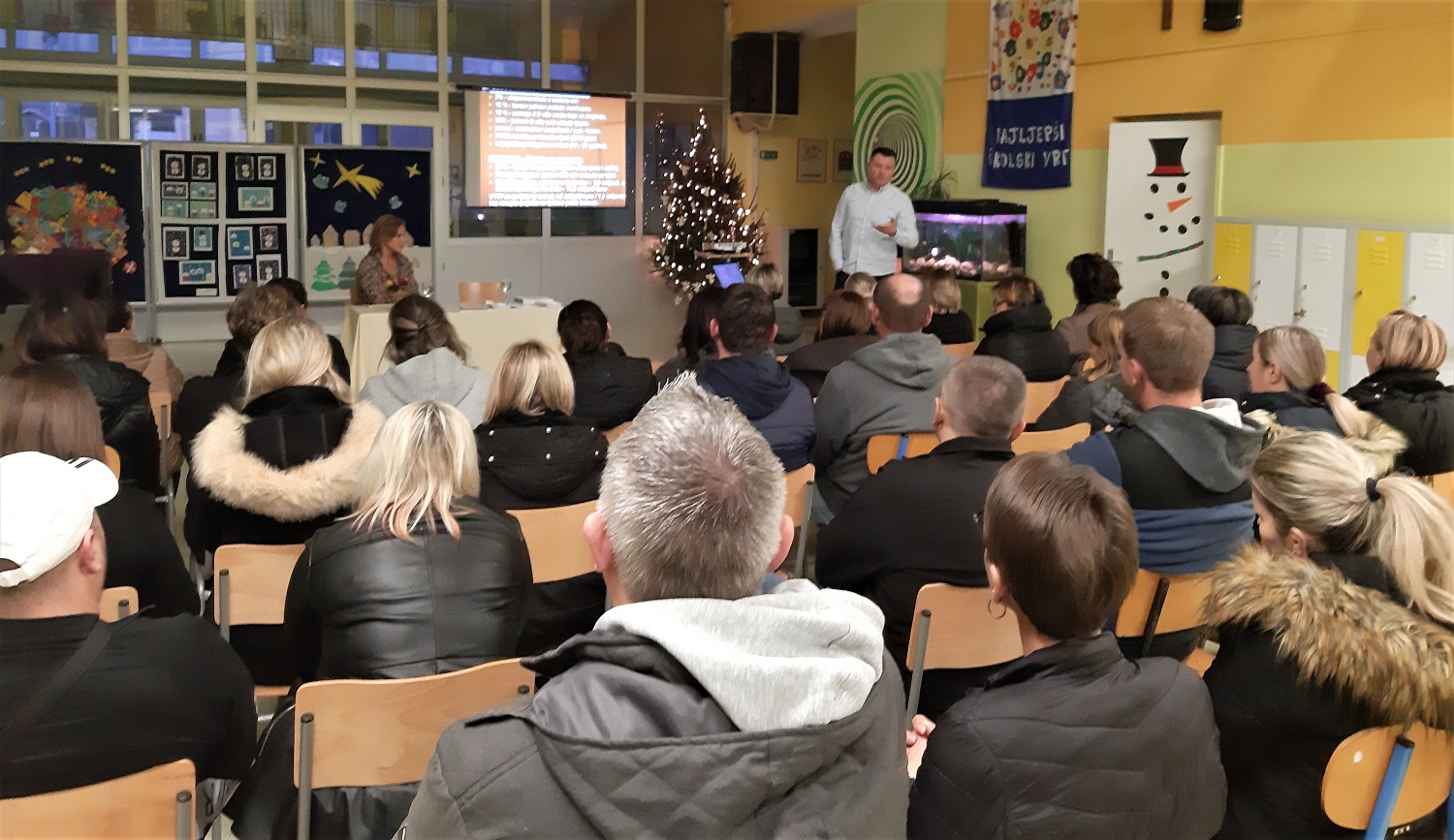 U sklopu realizacije Školskog preventivnog programa i projekta "JA kažem NE elektroničkom nasilju" u srijedu, 14. prosinca održana su dva predavanja za roditelje učenika 6., 7. i 8. razreda. Predavanja su održali Mario Medenjak iz Policijske uprave Varaždinske iz Odjela za preventivne aktivnosti te Irena Stipešević-Rakamarić voditeljica Odjela za promicanje zdravlja, preventivne programa i zdravstvenu statistiku Zavoda za javno zdravstvo Varaždinske županije. Predavači su na vrlo zanimljiv, a istovremeno i vrlo dokumentiran način govorili o nužnosti prevencije neprihvatljivih oblika ponašanja mladih. Dotaknuta su ponašanja i područja s kojima mladi u tinejdžerskim godinama najčešće imaju problema. Tako je bila riječ o vršnjačkom nasilju putem društvenih mreža, igranju video igara te internetskom klađenju. No, roditelji su upozoreni i na opasnosti eksperimentiranja s cigaretama, alkoholom, drogom kao i konzumiranjem energetskih napitaka.